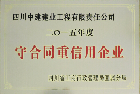 我公司被四川省工商行政管理局直屬分局授予二O一五年度“守合同重信用”企業。
