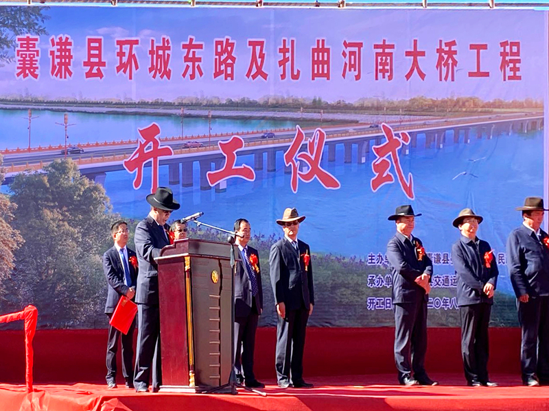 2020年8月1日上午10時整,囊謙縣交通運輸局在縣城城南扎曲河旁隆重舉行了囊謙縣環城東路及扎曲河南大橋工程開工儀式。囊謙縣縣委縣政府領導、嘉賓和工程建設、施工、監理等單位負責人,出席了開工儀式共襄盛舉,并為項目奠基