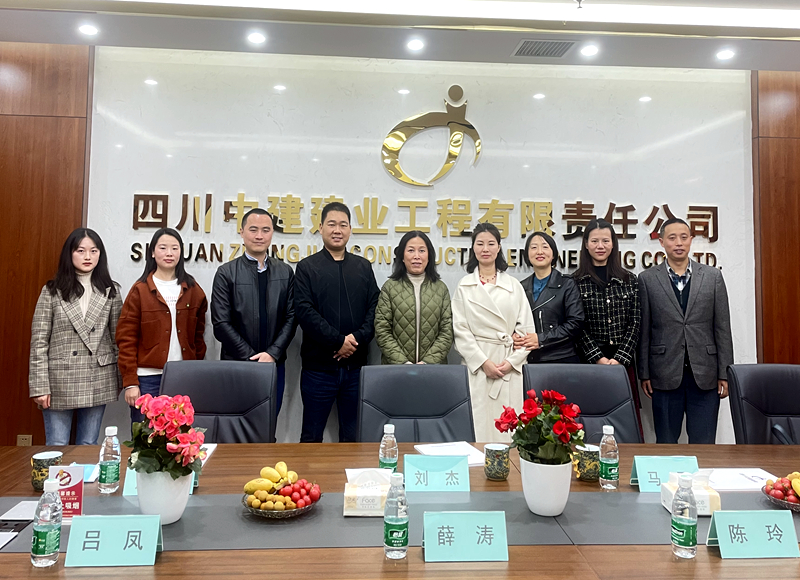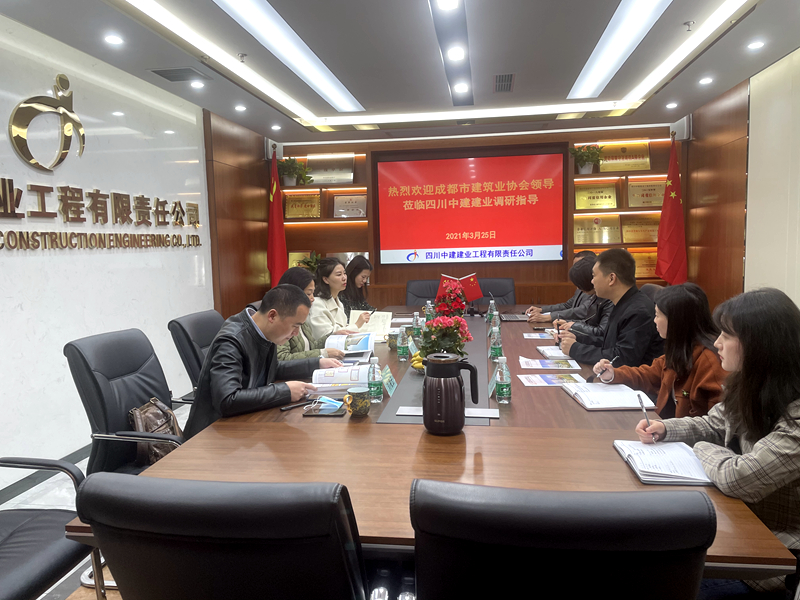 2021年3月25日,成都市建筑業協會常務副會長劉杰、秘書長馬平、副秘書長劉凌云、辦公室主任賈娟一行四人到四川中建建業工程有限責任公司座談調研,公司副總經理薛濤及工程部、經營部、財務部、行政辦等部門負責人參加座談。
